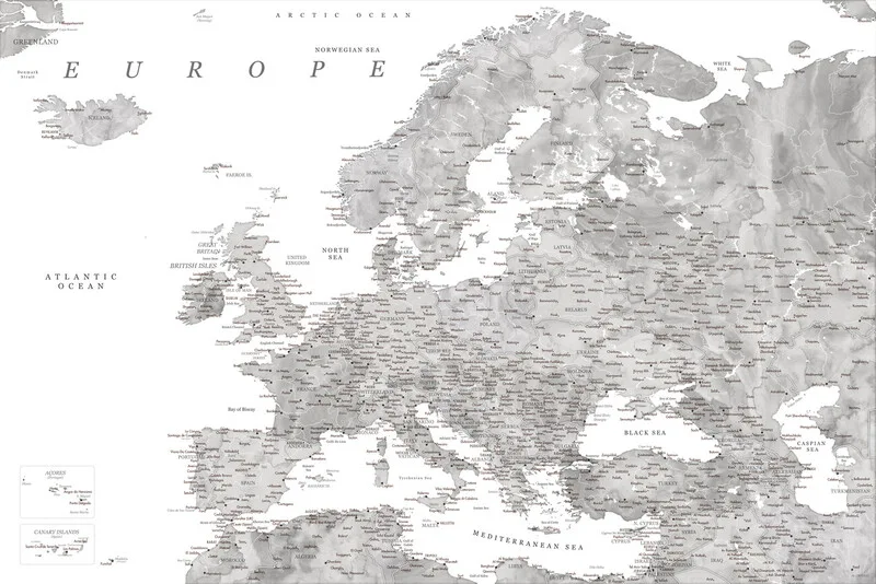 Canvas-taulu Detailed map of Europe in gray watercolor