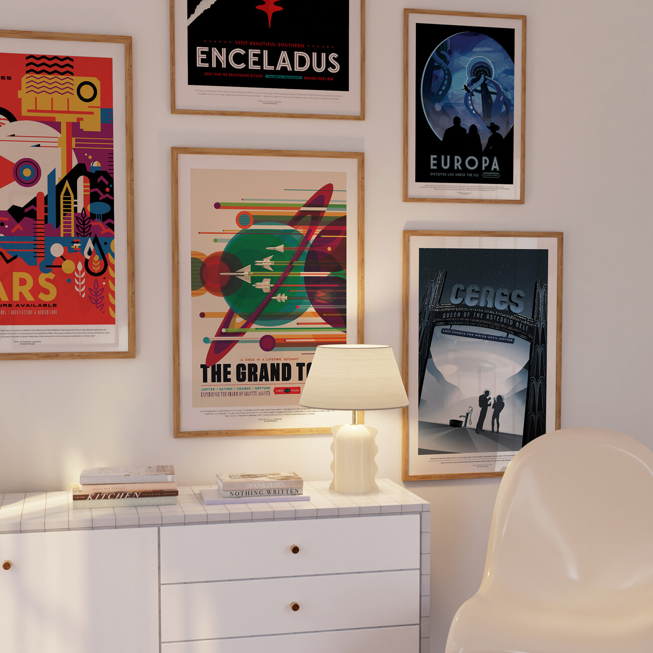 Canvas-taulu Enceladus (Retro Planet & Moon Poster) - Space Series (NASA)