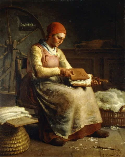 Woman Carding Wool,