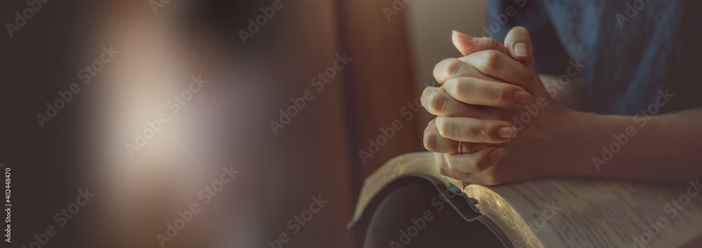 Valokuva Asian woman praying to God with blank space for text.