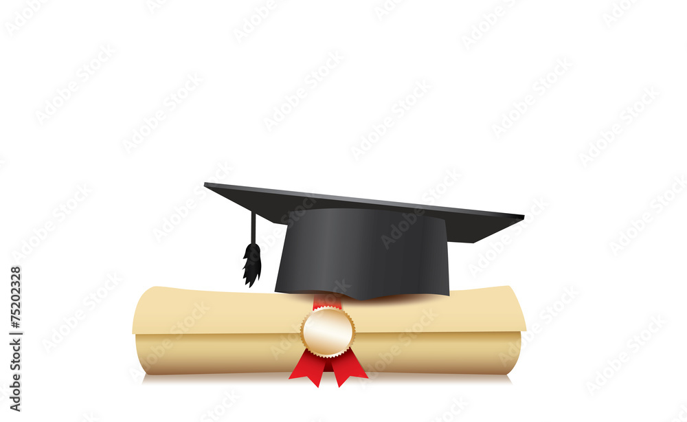 Canvas-taulu Black graduation cap with degree Isolated on white