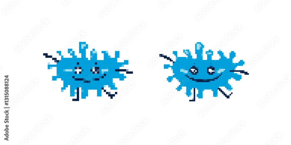 Canvas-taulu Two cartoon-style blue microbes with smiling faces and distinct tentacle-like projections stand out