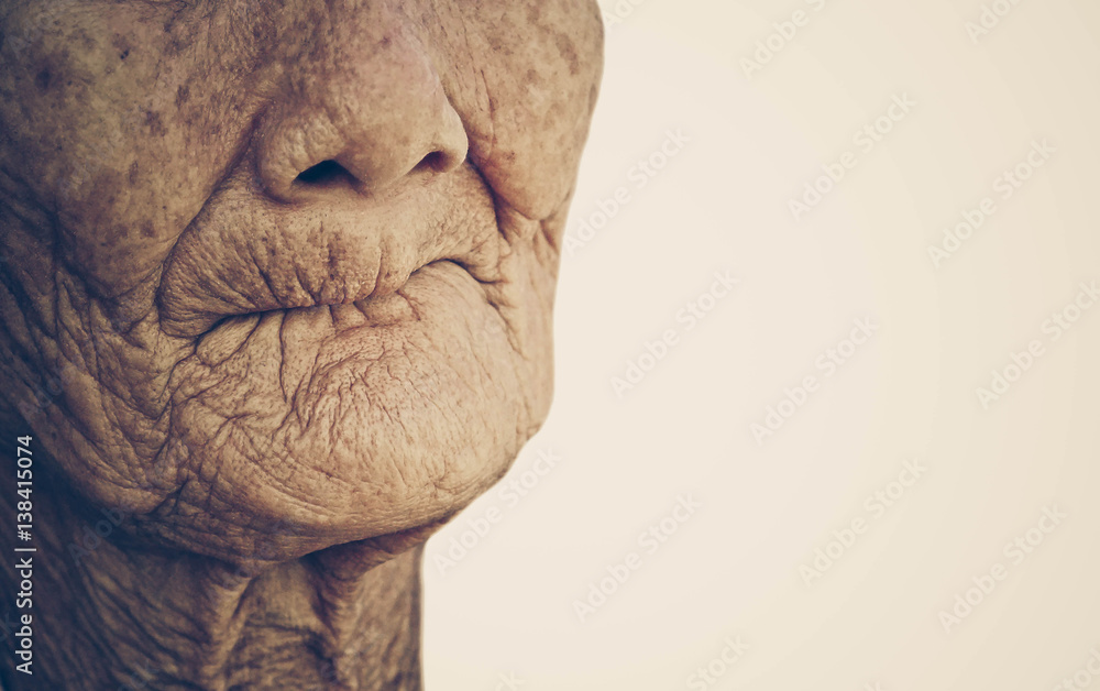 Canvas-taulu Closeup mouth of elderly woman toothless with space to add text