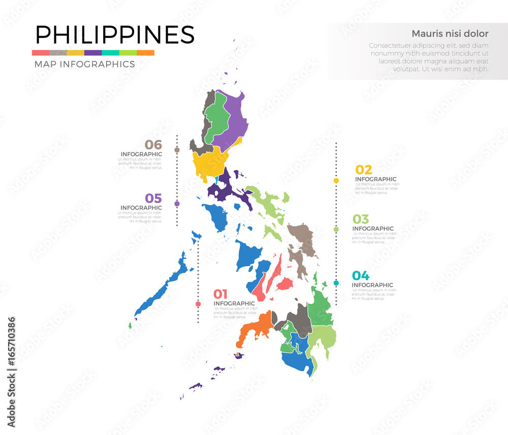 Canvas-taulu Philippines country map infographic colored vector template with regions and poi