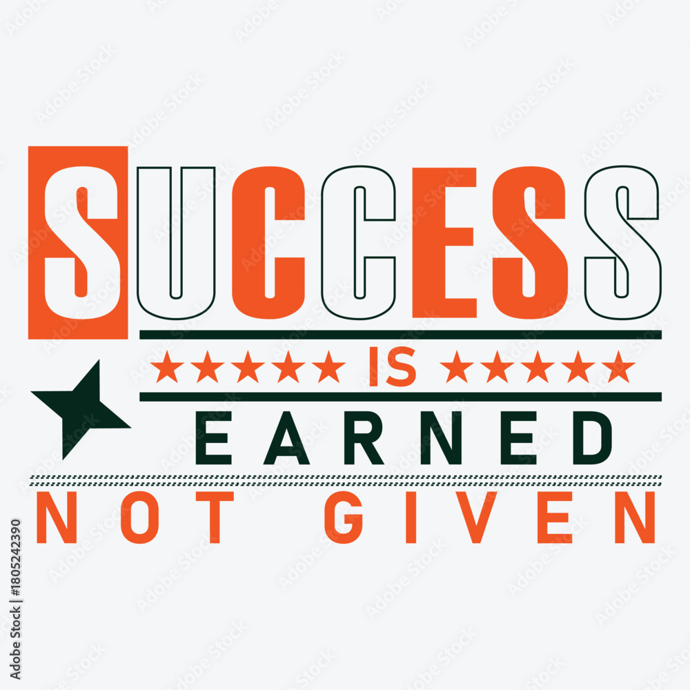 Canvas-taulu Success is Earned, Not Given - Motivational Typography Design
