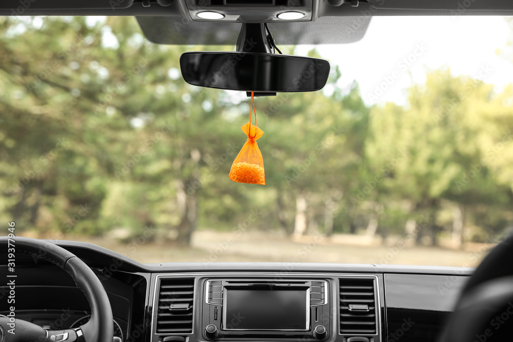 Canvas-taulu Air freshener hanging on rear view mirror in car