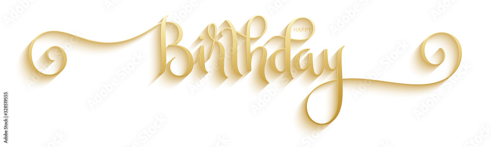 Canvas-taulu HAPPY BIRTHDAY metallic gold vector brush calligraphy banner with spirals