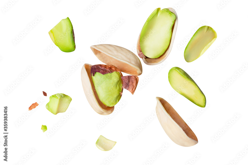 Canvas-taulu pistachio piece crushed isolated on white background clipping path, full depth