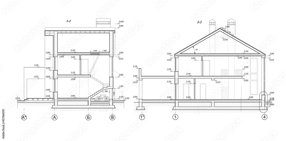 Canvas-taulu Private house section, detailed architectural technical drawing, vector blueprin
