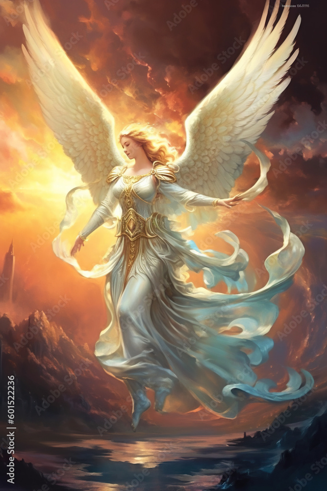Canvas-taulu A painting of an angel flying over a body of water