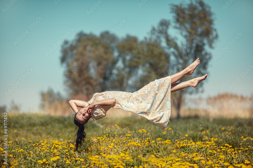 Canvas-taulu Girl hovers over the field.