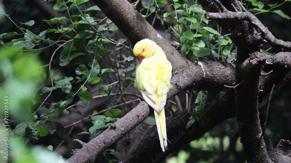 Canvas-taulu Cotorra de kramer amarillo, sobre una rama en el bosque