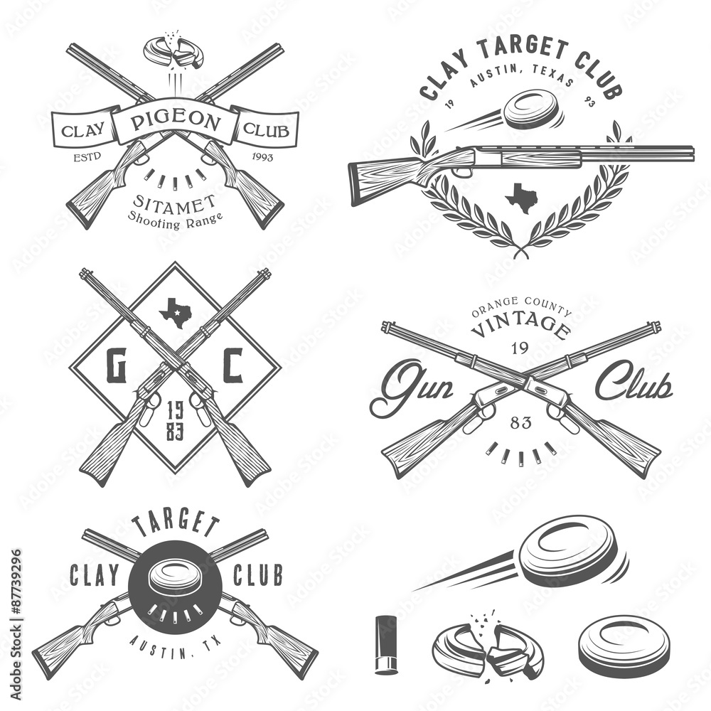 Canvas-taulu Set of vintage clay target and gun club labels, emblems and design elements