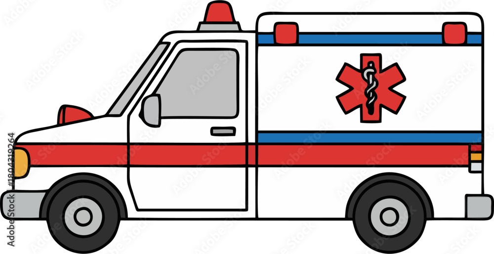 Valokuva Cartoon Ambulance Car Side View Vector Illustration