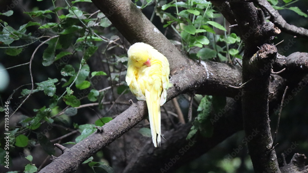 Canvas-taulu Cotorra de kramer amarillo, sobre una rama en el bosque