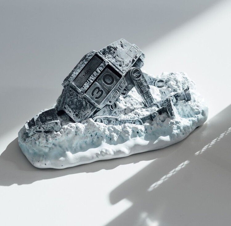 Ikoninen 3D-kalenteri, jossa on Star Wars -kuljetusauto, on kooltaan 20,1 x 7,8 x 12,2 cm.