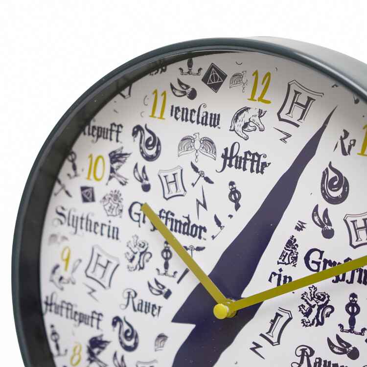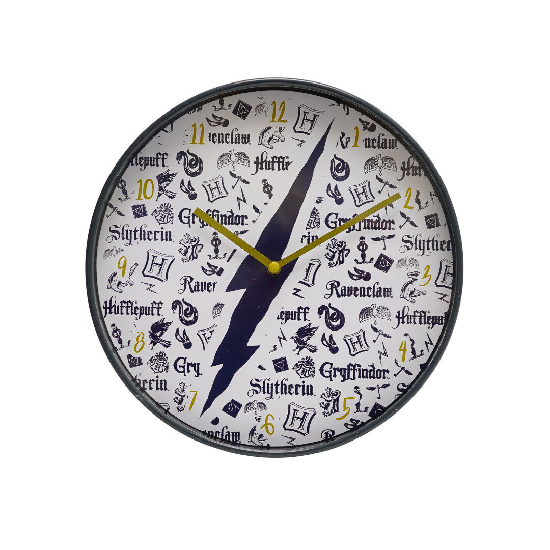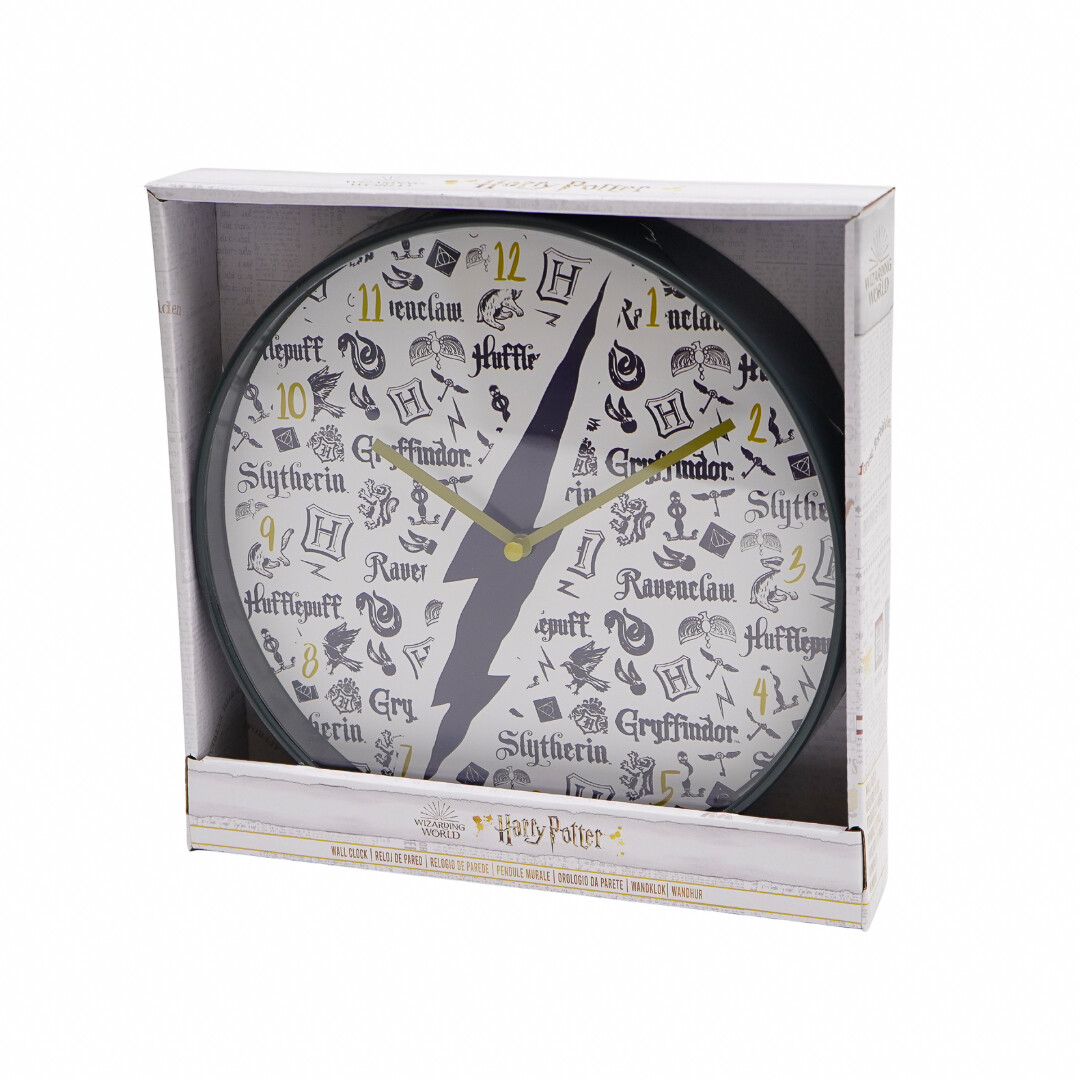 Hiljainen seinäkello, jossa on Tylypahkan neljän oppilaitoksen motiivi, on jokaisen Harry Potter -fanin ehdoton hankinta! Kellon halkaisija on 24,5 cm ja se tarvitsee toimiakseen vain yhden AA-pariston!