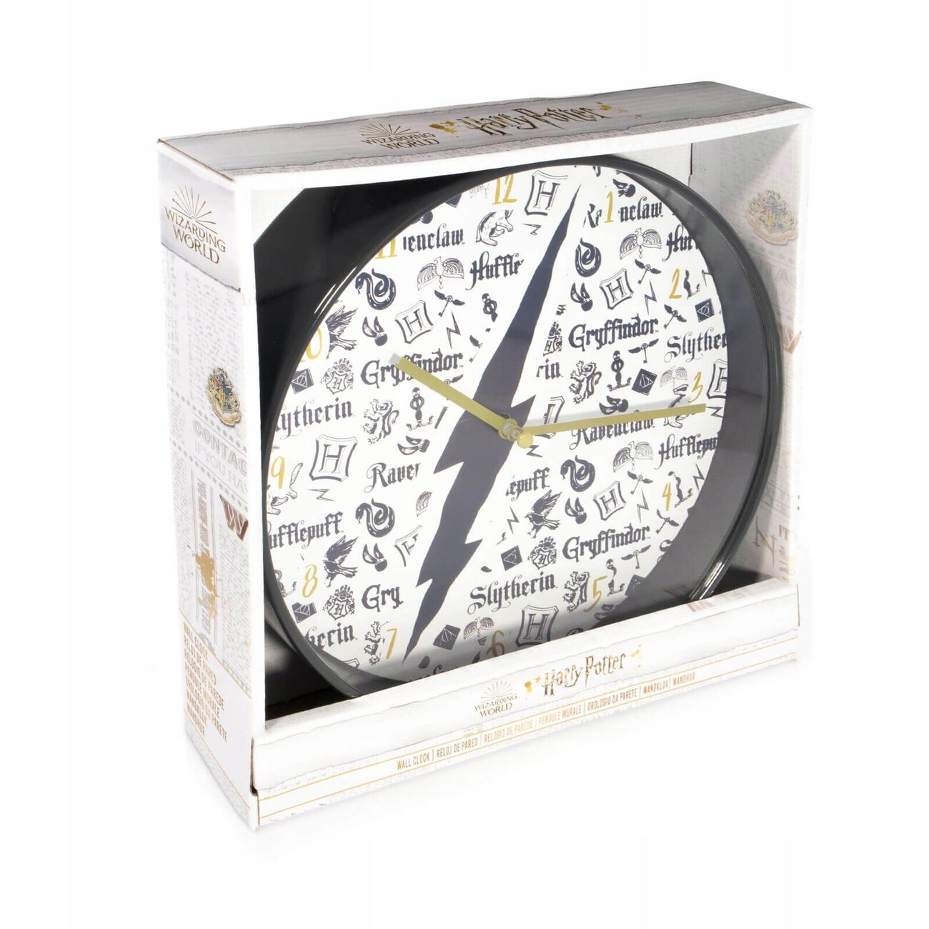 Kaikille Harry Potter -harrastajille tuomme ainutlaatuisen seinäkellon, jossa on Tylypahkan neljän oppilaitoksen motiivi: Gryffindor, Mrzimor, Ravenclaw ja Slytherin! Tämä kello vetää sinut Tylypahkan taianomaiseen ilmapiiriin ja muistuttaa sinua siitä, että jokaisella asuntolalla on omat ainutlaatuiset ominaisuutensa ja arvonsa. Upea lisä mihin tahansa huoneeseen, toimistoon tai leikkihuoneeseen, joka ilahduttaa kaikkia tämän velhosarjan faneja. Lisää taikaa tiloihisi ja ilmaise asuntolaylpeytesi jokaisella vilkaisulla tähän ainutlaatuiseen kelloon!