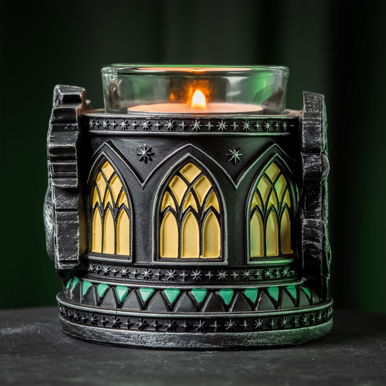 Taika odottaa sinua tällä virallisesti lisensoidulla Harry Potter Slytherin -teevalaisinpidikkeellä. Valaise tilasi Slytherinin talon oveluudella ja kunnianhimolla ja luo maagisen tunnelman, joka sopii kenelle tahansa noidalle, velholle tai muggelille. Siinä on ikoninen Luihuinen vaakuna, joka tuo Tylypahkan talon hengen mihin tahansa tilaan. Tämä hartsista valettu ja sitten käsin maalattu Slytherin-teelamppupidike sopii kaikille velhomaailman faneille ja tekee Harry Potter -elokuvan katselusta entistäkin viihtyisämpää!