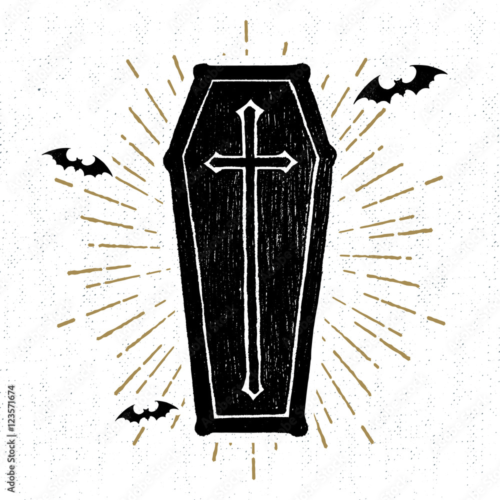 Canvas-taulu Hand drawn Halloween icon with a textured coffin vector illustration
