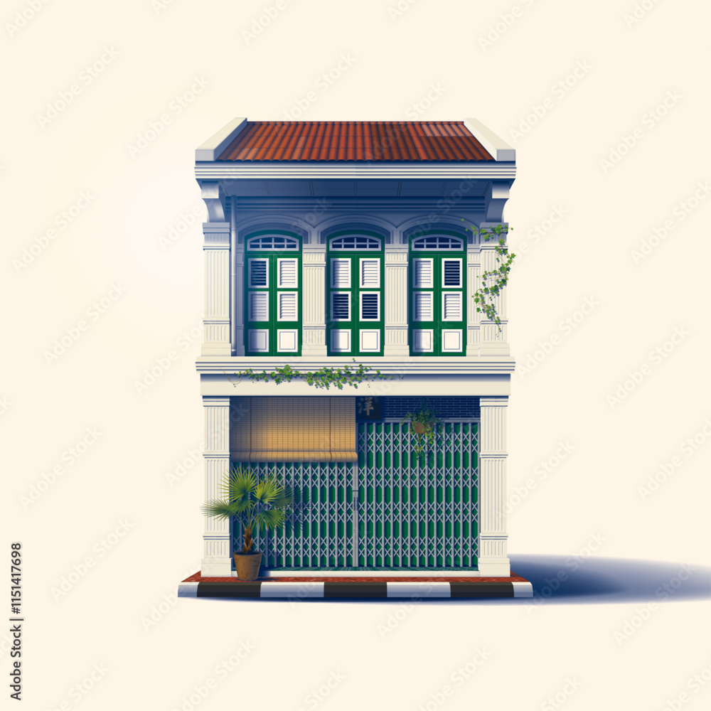 Canvas-taulu Heritage Nanyang Kopitiam Shophouse Facade Realistic Illustration