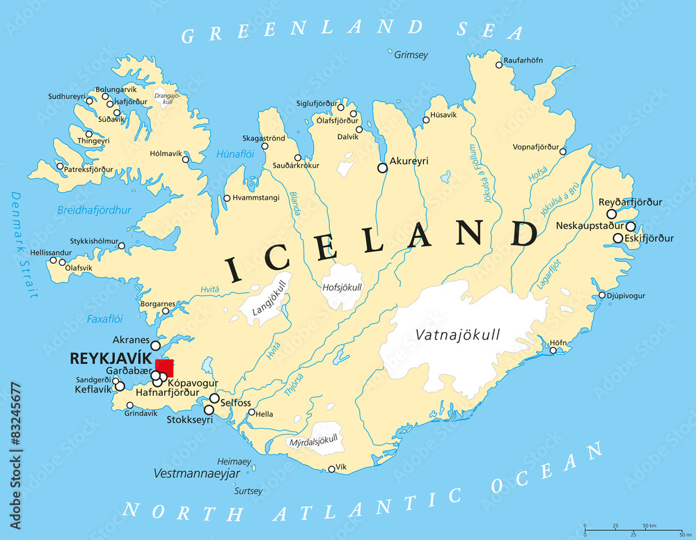 Canvas-taulu Iceland Political Map