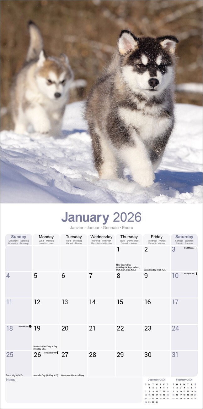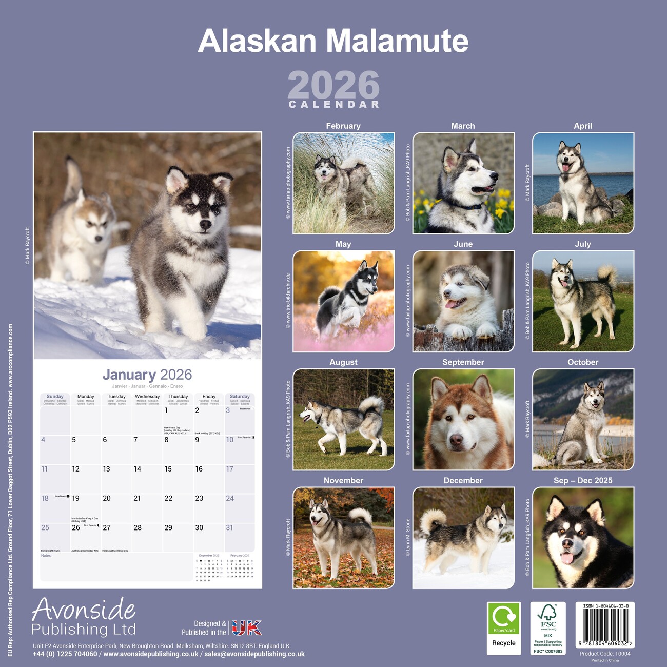 • Alaskan Malamute-kalenteri voidaan ripustaa mille tahansa seinälle