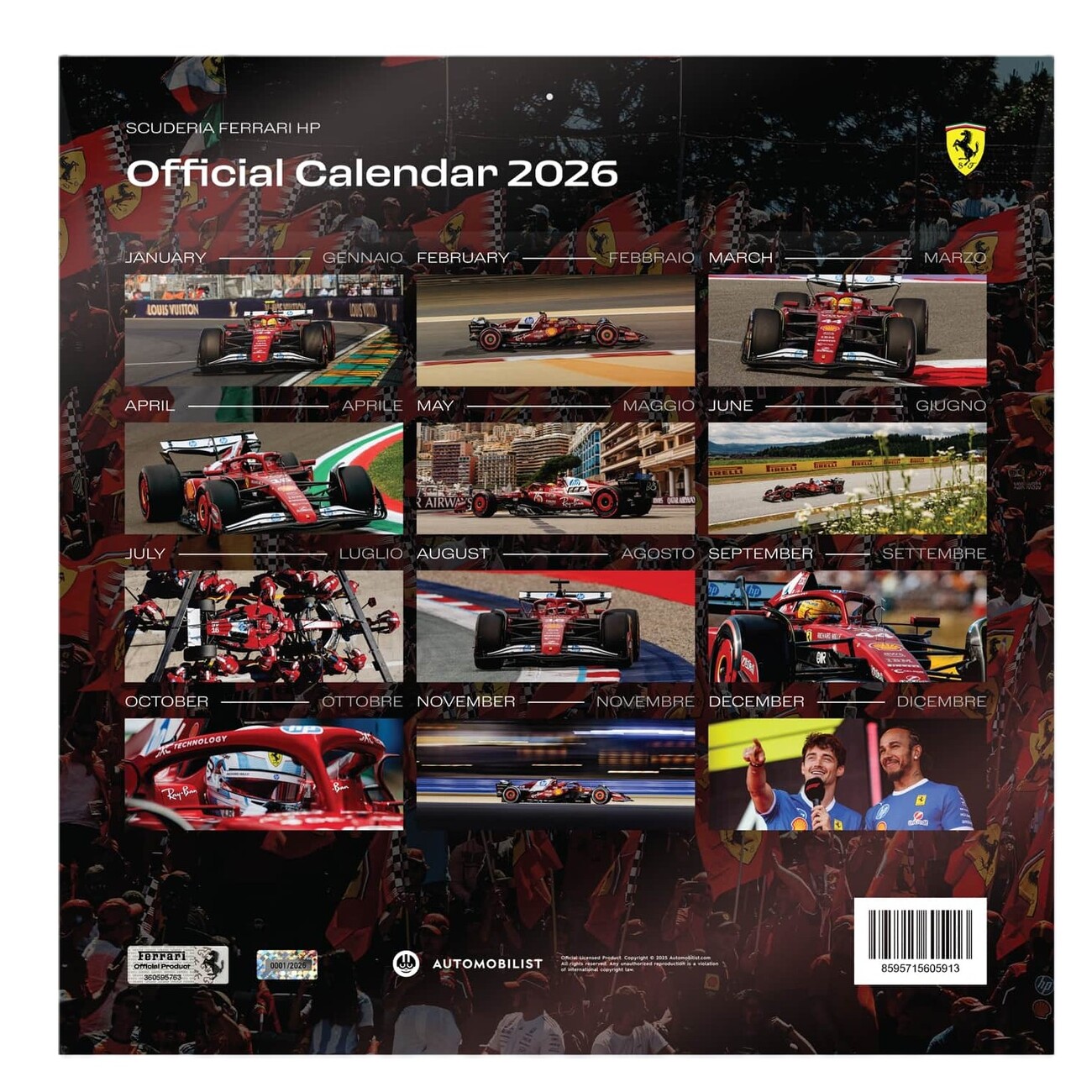 Virallinen Scuderia Ferrari HP 2026 -seinäkalenteri sisältää koko Formula 1® -kauden aikataulun maaliskuusta joulukuuhun sekä 12 kuratoitua kuvaa. Rajoitettu 2 026 kappaleeseen, laadukas offset-painatus puolikiiltävälle paperille – täydellinen lahja keräilijöille ja F1-faneille.