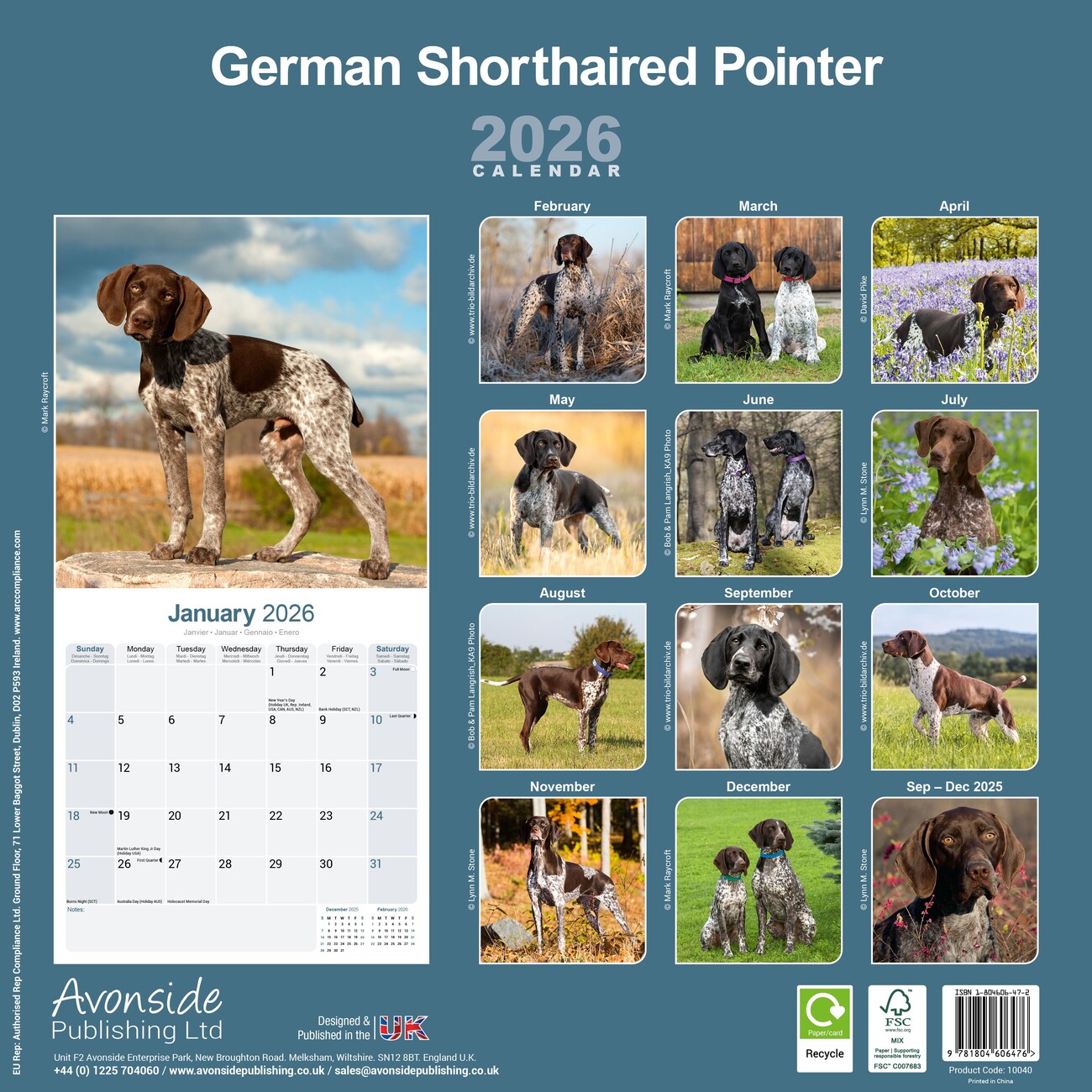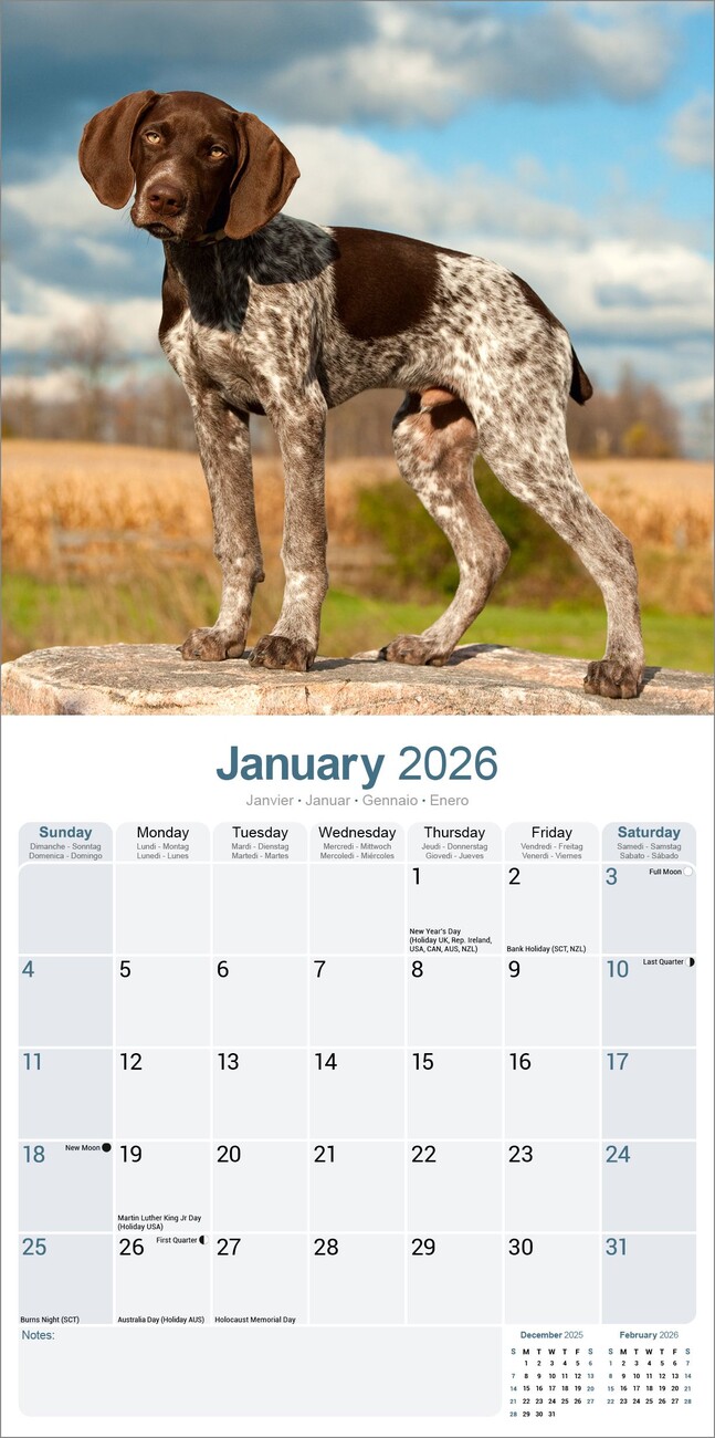 • German ShortHair Pointer-kalenteri voidaan ripustaa mille tahansa seinälle