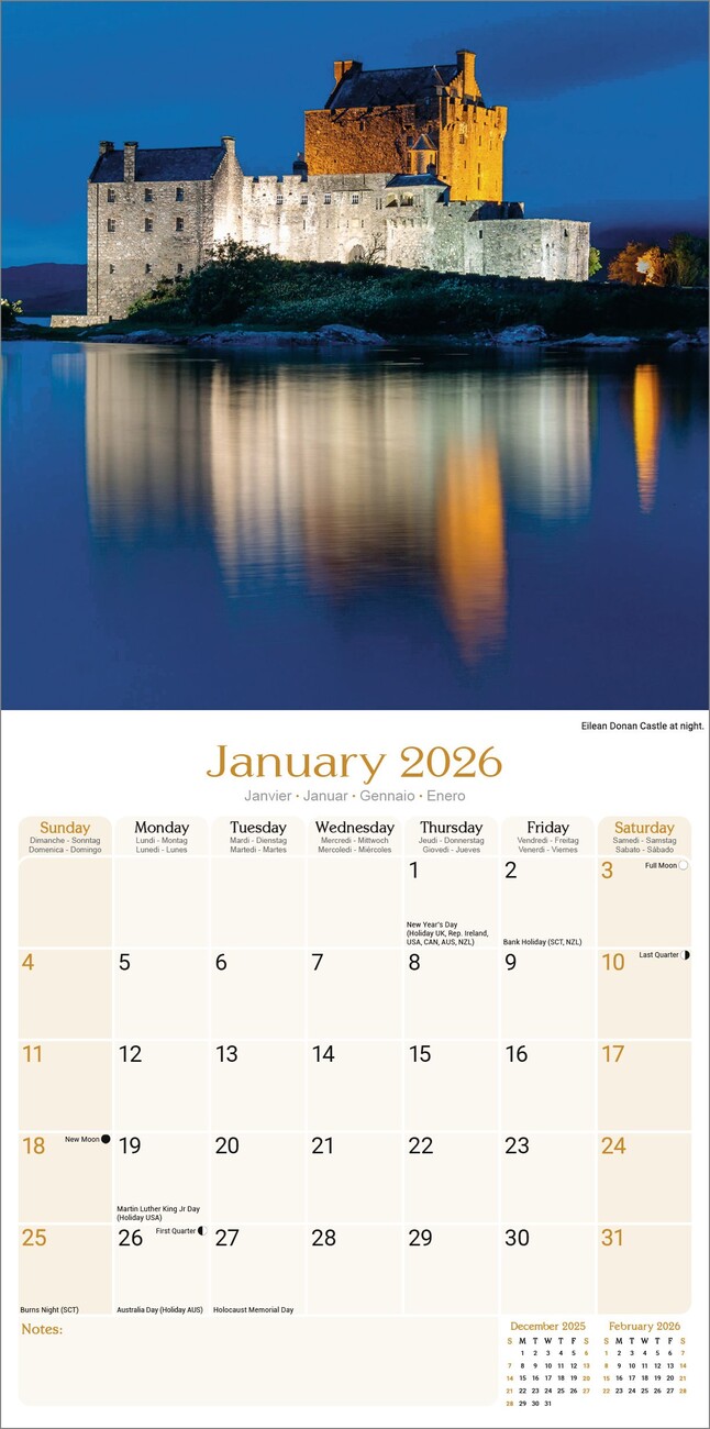 • Scotland-kalenteri voidaan ripustaa mille tahansa seinälle