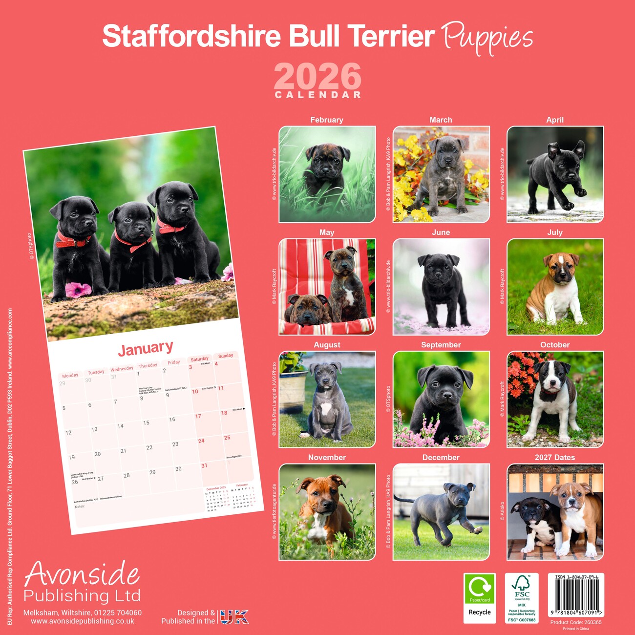 • Stafford Bull Terrier-kalenteri voidaan ripustaa mille tahansa seinälle