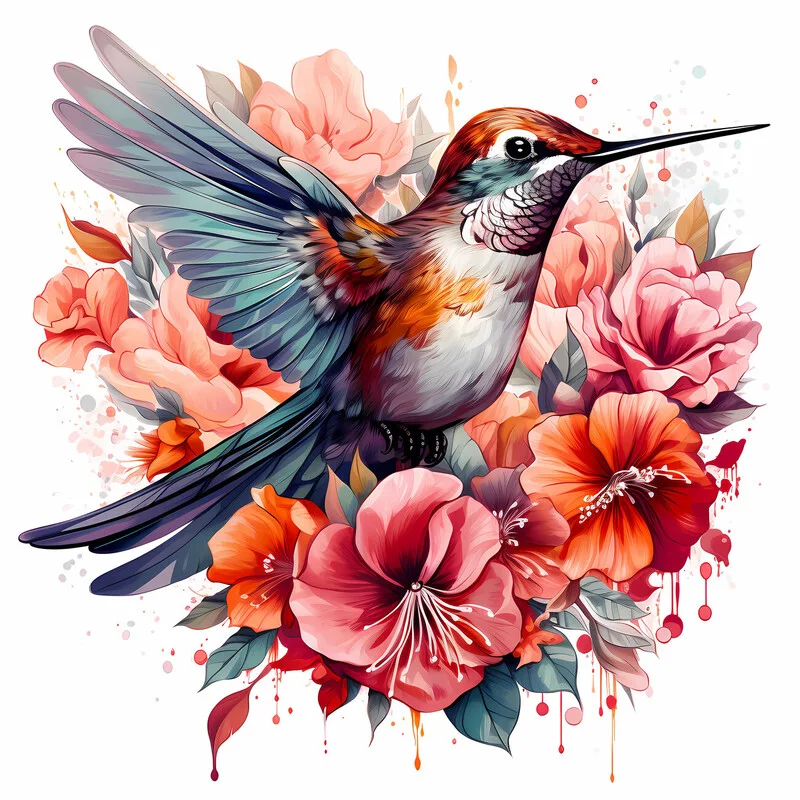 Seinätarra Hummingbird and flowers, watercolor illustration
