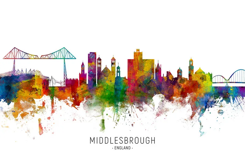 Juliste Middlesbrough England United Kingdom Skyline Cityscape Paint