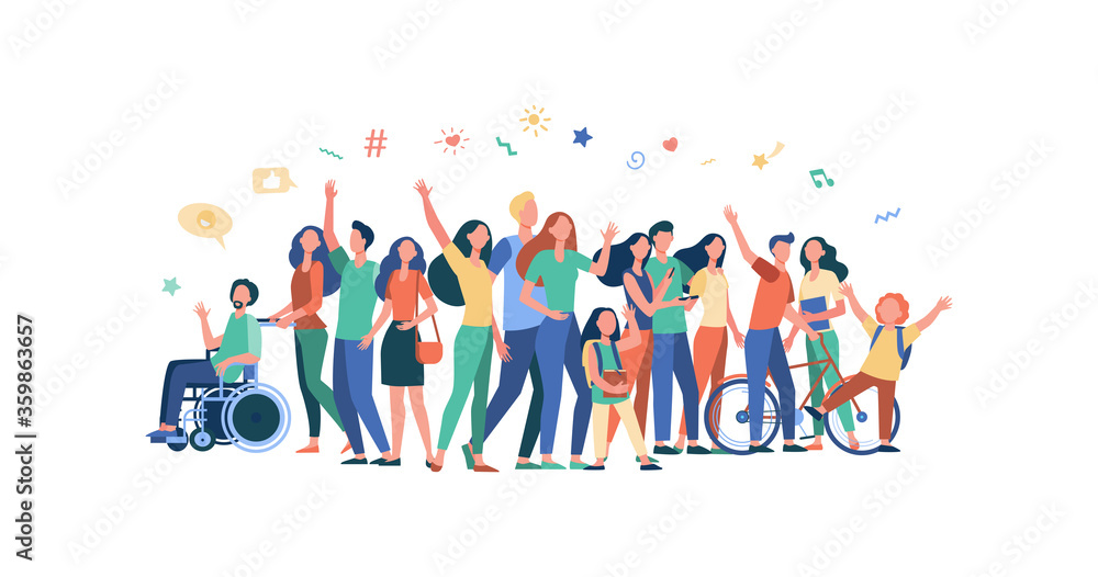 Canvas-taulu Multicultural people standing together isolated flat vector illustration