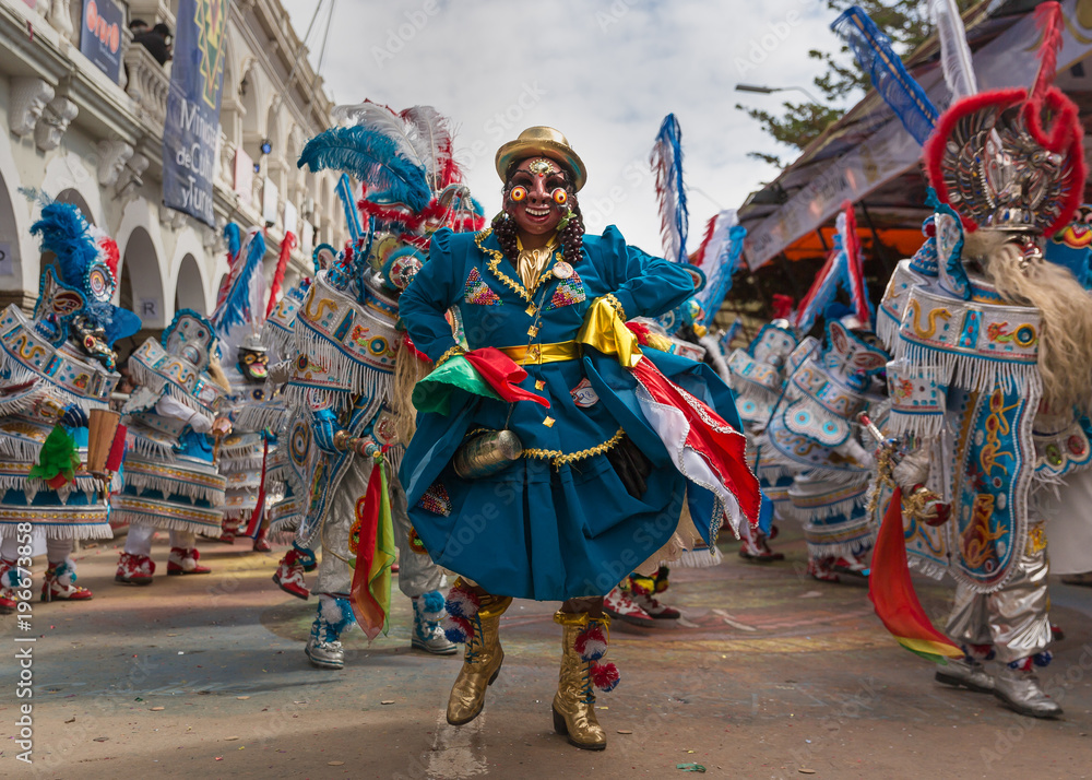 Canvas-taulu Oruro carnival in Bolivia with masked dancer during procession