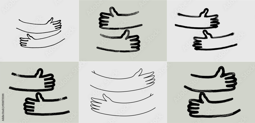 Seinätarra Set of hug hands doodle outline hand drawn logo icon sign Cute brush stroke