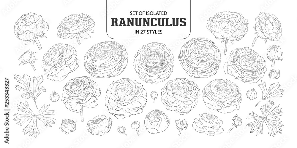 Seinätarra Set of isolated Ranunculus in 27 styles.