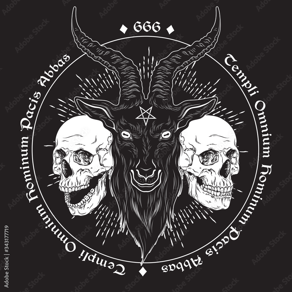 Seinätarra Baphomet demon goat head hand drawn print or blackwork flash tattoo art design vector illustration