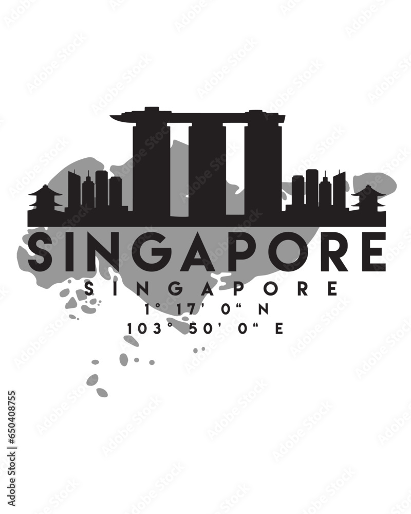 Seinätarra Vector illustration of the Singapore city skyline silhouette on a map with the c