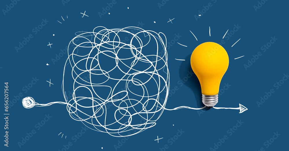 Seinätarra Clarifying complex ideas theme with light bulb - Flat lay