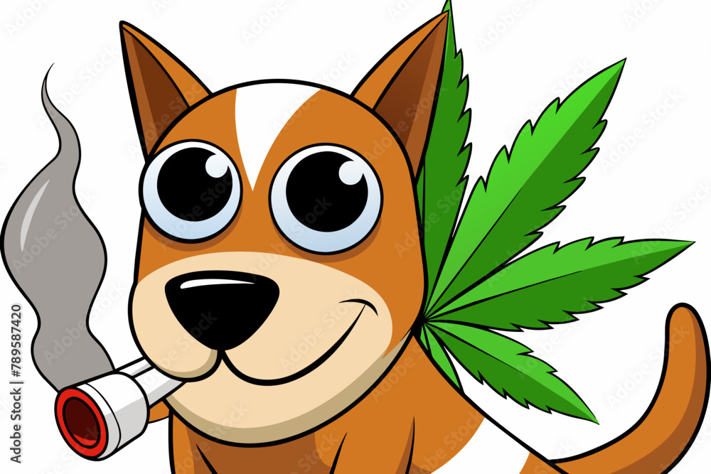 Seinätarra Craft a humorous cartoon illustration depicting a Dog smoking a cannabis cigarette against a pristine white background