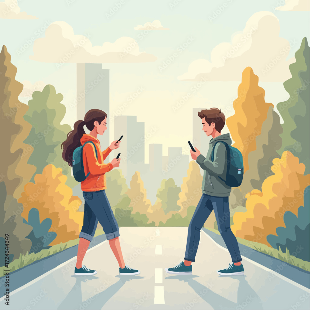 Valokuva The silent disconnect Two young people, deeply focused on their smartphones, exe