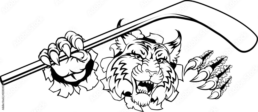 Valokuva A wildcat or bobcat ice hockey team cartoon animal sports mascot