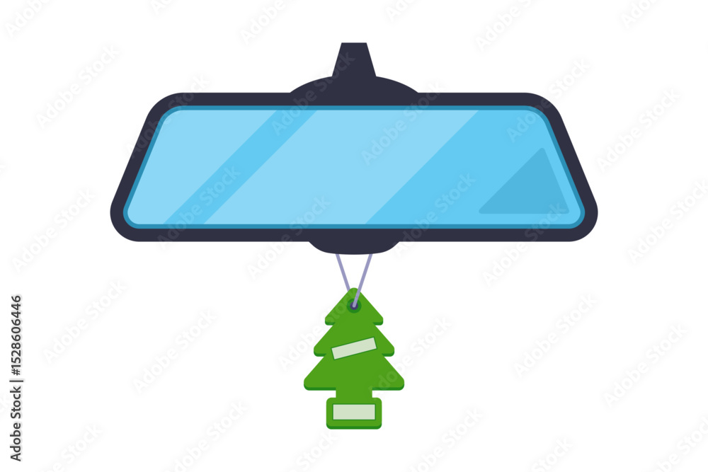 Valokuva Car rear view mirror with key fob. flat illustration.
