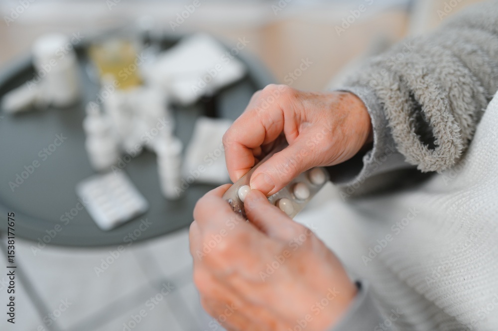Valokuva Close up of an elderly hand holding pills