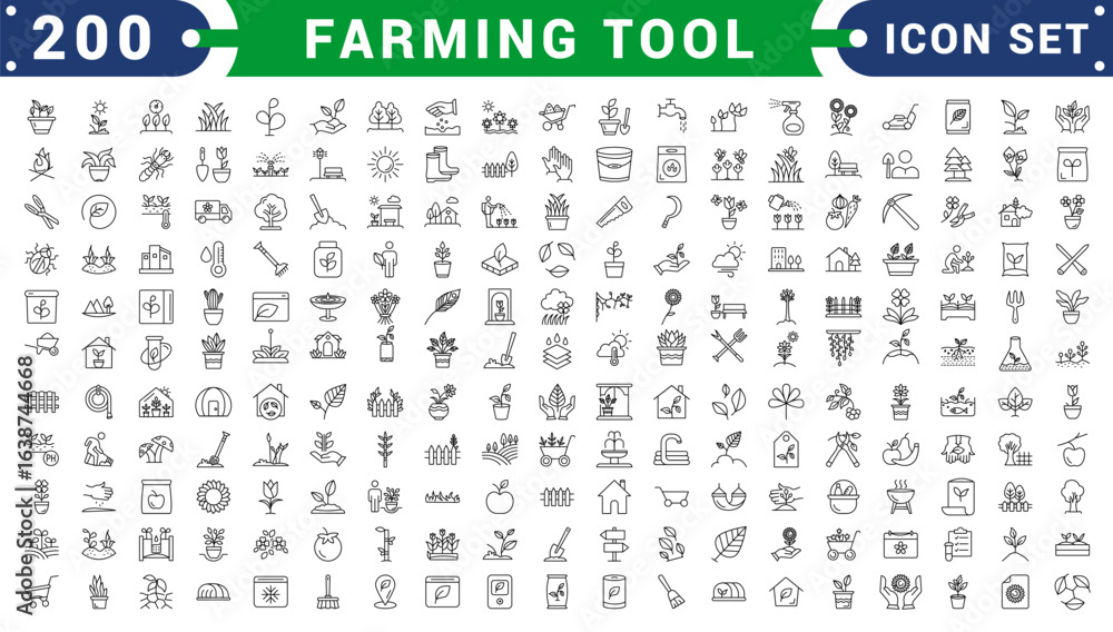 Valokuva set of gardening farming icons collection outline simple black
