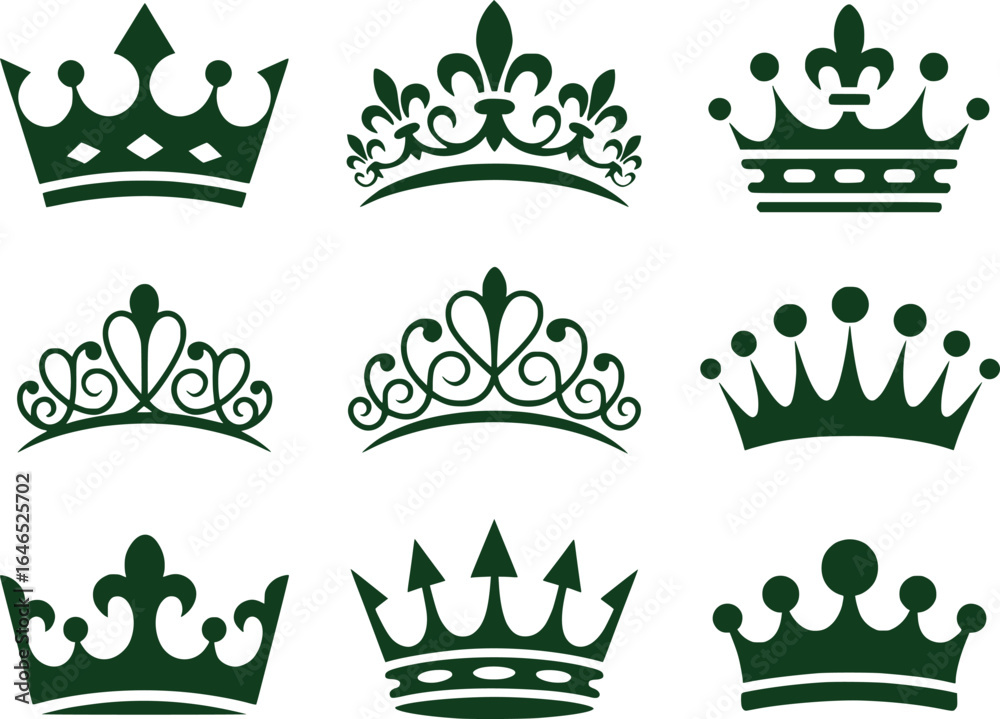 Valokuva A Collection of Dark Green Silhouetted Crown Designs Royal and Regal Insignias f