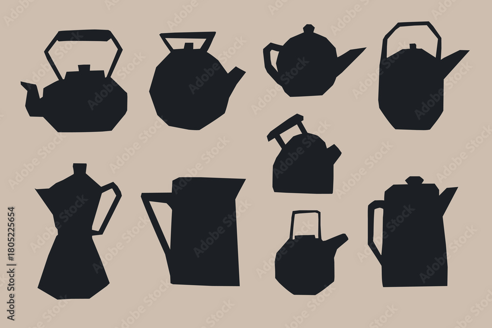 Valokuva Abstract vector set of silhouettes of teapots, kettles, and coffee makers