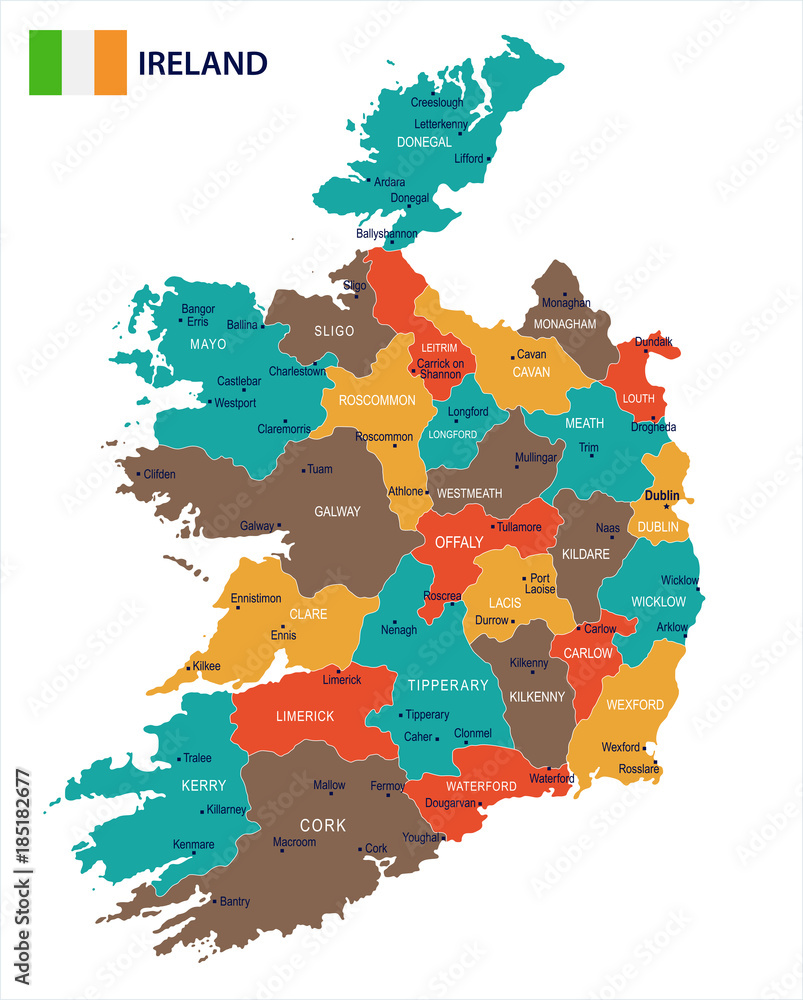 Valokuva Ireland - map and flag Detailed Vector Illustration