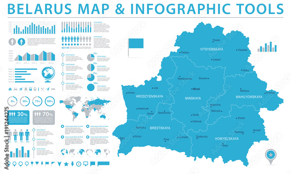 Valokuva Belarus Map - Info Graphic Vector Illustration